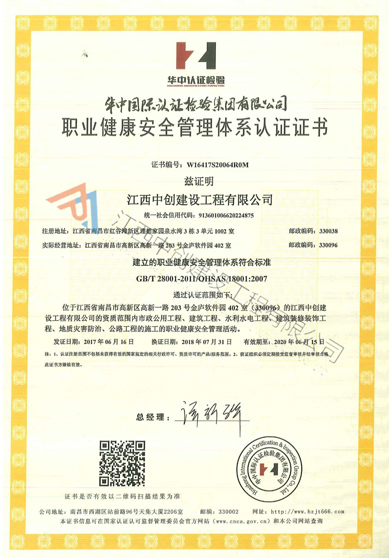 • 江西中創建設工程有限公司企業理念2018-07-26